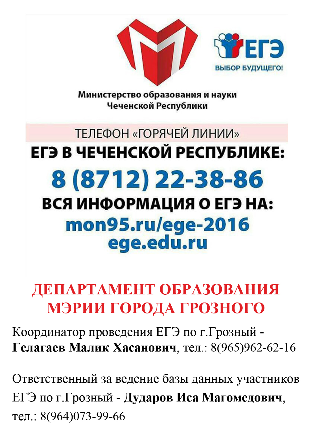 Так же доводим до вашего сведения, что телефон горячей линии Министерства образования и науки изменился на 8(812)22-38-86.