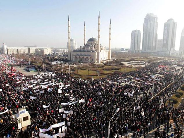 Участники митинга выражают протест тем, кто сознательно разжигает всемирный пожар религиозной и межнациональной вражды и пытается оскорбить религиозные чувства всех мусульман мира. В Грозный на митинг стекались неравнодушные мусульмане со всего Северного Кавказа. Поддержать акцию протеста против карикатур на пророка Мухаммада прибыли и представители других конфессий. Марш стартовал с Площади Минутка, верующие направились к мечети «Сердце Чечни». Мы заявили решительный протест против хамства, безнравственности, бескультурья и бесстыдства тех, кто рисовал карикатуры на пророка Мухаммада. И мы публично предупреждаем, что не потерпим подобных действий, призываем к порядку каждого, кто заденет честь Пророка. - заявил в своем выступлении Глава Чеченской республики Рамзан Кадыров. В начале колонны верующих шагали старейшины, за ними следовали прочие горожане. Демонстранты несли плакаты с надписью: «Руки прочь от пророка Мухаммеда», кричали «Аллах1у Акбар!». Акция закончилась коллективным намазом.