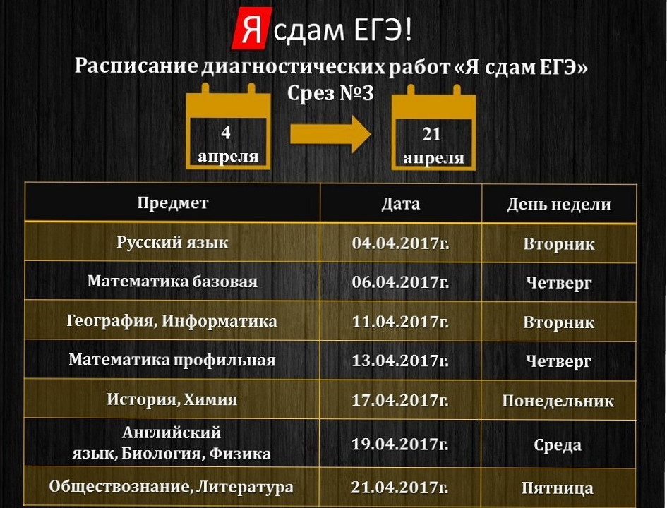 РАСПИСАНИЕ ТРЕТЬЕГО СРЕЗА ЗНАНИЙ В РАМКАХ ПРОЕКТА "Я СДАМ ЕГЭ!"