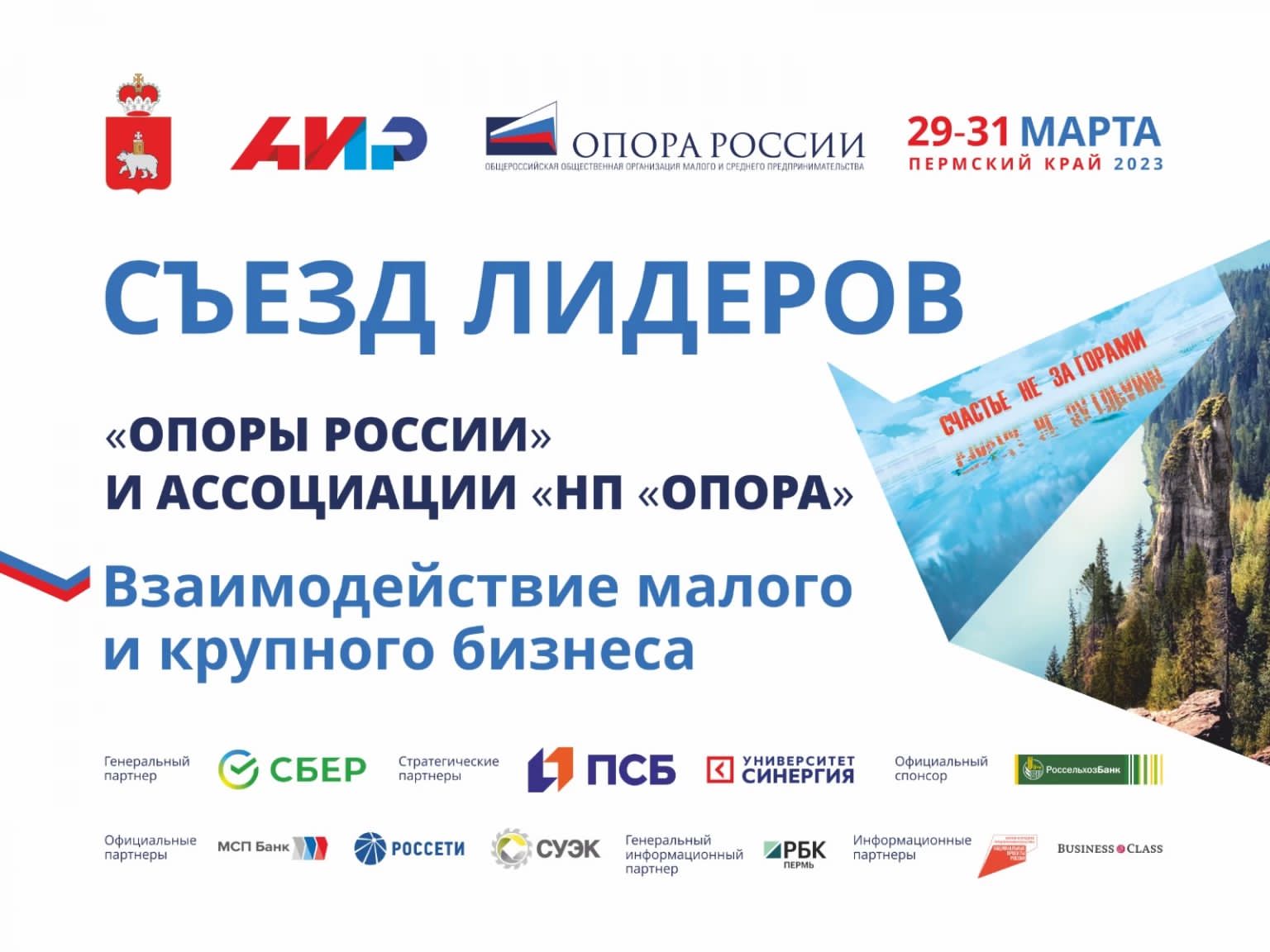 27.03.2023С 29 по 31 марта в Перми состоится Съезд лидеров «ОПОРЫ РОССИИ» и Ассоциации «НП ОПОРА», на котором соберутся представители федеральных и региональных органов власти, актив бизнес-объединения, члены региональных отделений Организации, а также отраслевых ассоциаций и союзов. В рамках деловой программы будет затронут широкий круг тем, актуальных для представителей сектора МСП: взаимодействие крупного и малого бизнеса, продвижение товаров на маркетплейсах, защита прав предпринимателей и многое другое.29 марта: что ждет участников первого дня Съезда лидеровНа площадках Съезда лидеров пройдут несколько разноформатных мероприятий — от пленарного заседания, в котором примет участие Губернатор Пермского края Дмитрий Махонин, до параллельных дискуссий, которые будут посвящены важным в новых реалиях вопросам.Темой пленарного заседания, которое промодерирует Президент «ОПОРЫ РОССИИ» Александр Калинин, станет «Взаимодействие крупного и малого бизнеса в промышленности. Эксперты расскажут о лучших практиках сотрудничества крупного бизнеса с субъектами МСП; федеральных и региональных инструментах содействия их кооперации; мерах для построения эффективного взаимодействия в том числе в рамках Нацпроекта МСП и др. В качестве спикеров выступят: замминистра экономического развития РФ Татьяна Илюшникова, замруководителя фракции «Единая Россия» в Госдуме РФ Сергей Морозов, генеральный директор АО «Корпорация МСП» Александр Исаевич, Первый вице-президент «ОПОРЫ РОССИИ» Марина Блудян, генеральный директор Платформы для работы с обращениями предпринимателей «ЗаБизнес.РФ» Элина Сидоренко и др.При участии Губернатора также пройдет финал региональной премии «Бизнес-Успех» в Пермском крае и награждение ее участников.В рамках параллельных сессий эксперты поднимут самые разные темы, которые волнуют представителей сектора МСП. Так, на площадке дискуссии «Маркеплейсы. Преимущества и проблемы. Проект «ОПОРА-СТАРТ» руководитель проекта «ОПОРА-СТАРТ» Олеся Соловьева, директор по развитию сервисов Wildberries Кристина Спирева, GR-директор «Яндекс Маркета» Дмитрий Русаков и другие эксперты поделятся преимуществами взаимодействия предпринимателей с маркетплейсами, на что обращать внимание при работе с ними, как небольшим предпринимателям продавать свою продукцию в сетях, а также уникальными условиями для членов бизнес-объединения.Сессия «Промышленный МСП: вызовы и возможности» будет посвящена дефициту кадров в промышленности, потенциалу и барьерам для инновационных разработок производителей МСП, развитию офсетных контрактов, примерам использования IT-сервисов промпредприятиями для экономии ресурсов и др. Мероприятие пройдет под модераторством Вице-президента Ассоциации «НП ОПОРА», Председателя Комитета «ОПОРЫ РОССИИ» по промышленности Максима Третьякова. В качестве спикеров выступят: руководители профильных Комитетов Новосибирской и Челябинской «ОПОРЫ РОССИИ» Евгения Чавкина и Павел Золотов, директор ООО «Е-Металл» Денис Харламов, директор ООО «Уральский завод автоматики» Сергей Кашигин и др.О транспортной реформе в Перми, опыте Пермского края в борьбе с нелегальными перевозчиками, развитии сети заправочных станций, работающих на природном газе, реализации нацпроекта «Безопасные качественные дороги» расскажут эк