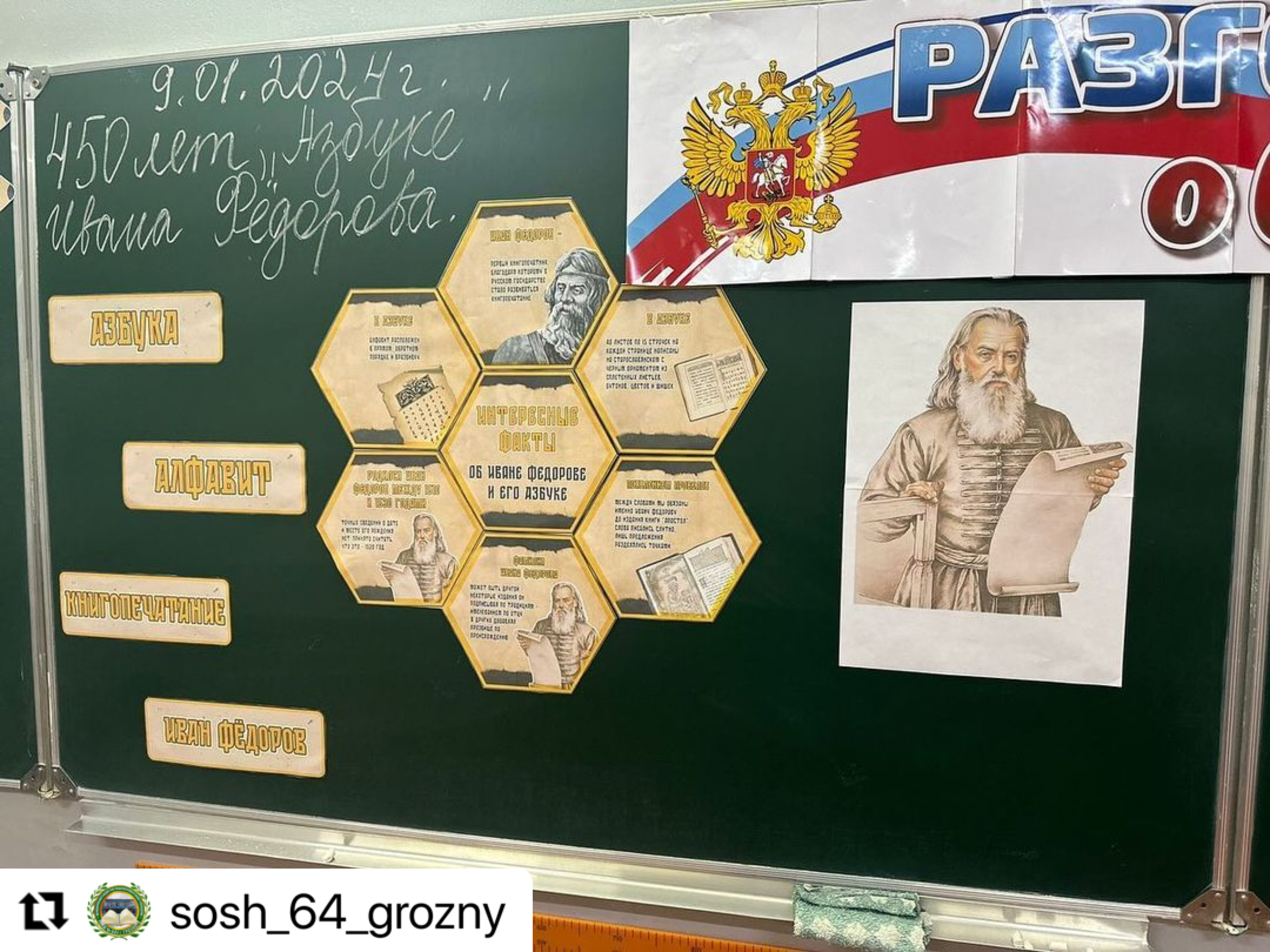 09.01.2024А также для учащихся нашей школы была проведена беседа из цикла внеурочных занятий «Разговоры о важном» по теме: «От А до Я. 450 лет «Азбуке» Ивана Фёдорова».