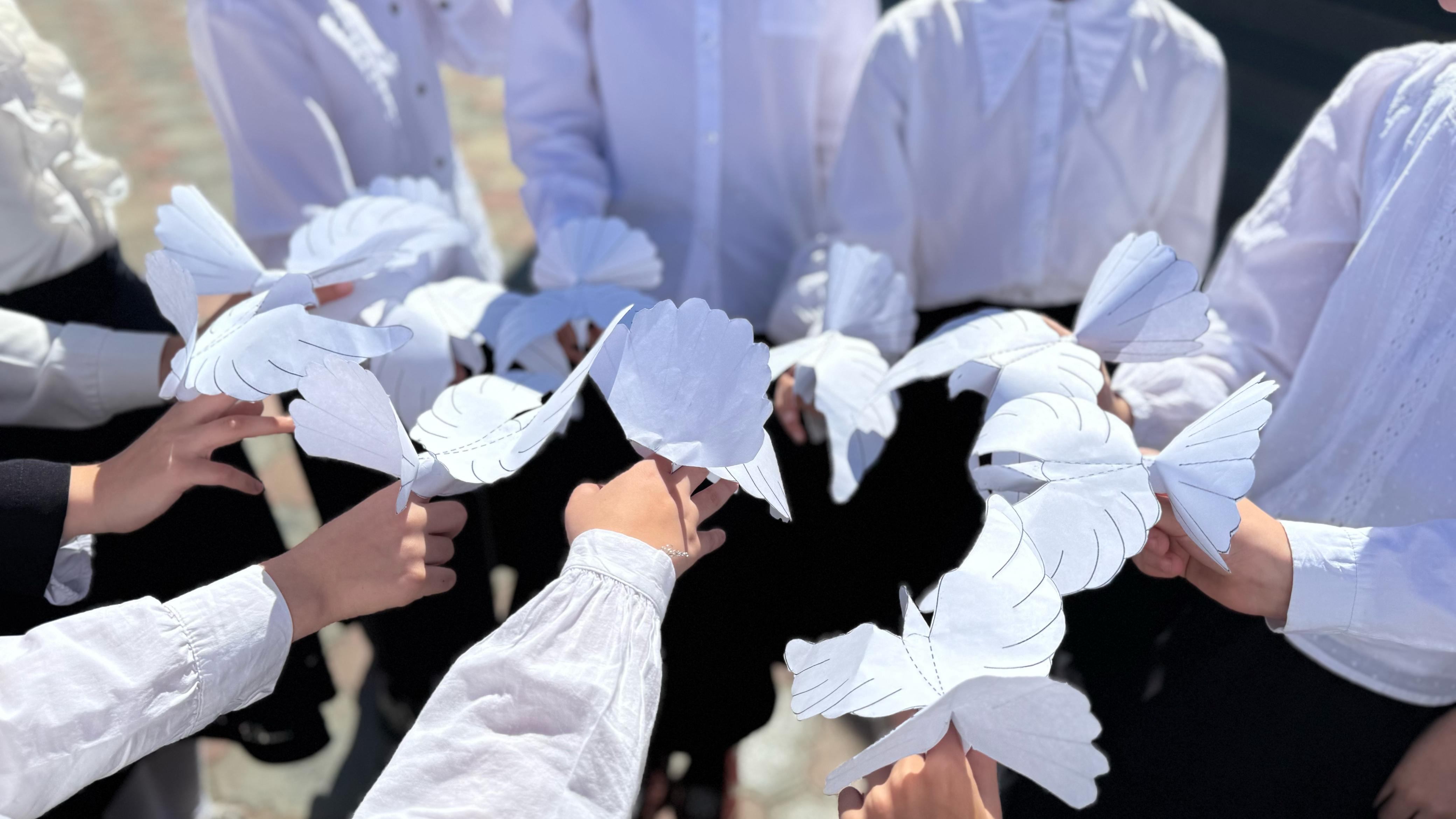 ▪️Ребята с радостью приняли участие в этом важном мероприятии, выразив свою приверженность ценностям добра, согласия и мира. Символом акции стал белый голубь — знак надежды, чистоты и мирного неба над головой.