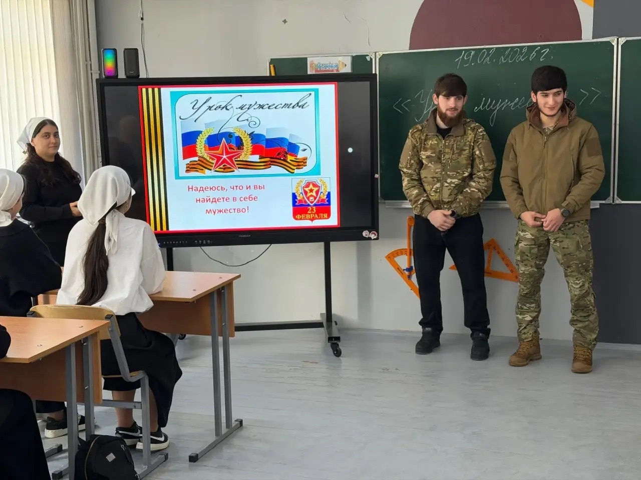 23.02.2026♦️В рамках исполнения Плана мероприятий Департамента образования Мэрии г. Грозного, приуроченных к празднованию Дня защитников Отечества, в МБОУ «СОШ № 64» прошли классные часы и беседы на темы «Твой выбор – защита Отечества», «Кто такой защитник Отечества», «Уроки Мужества». Эти мероприятия стали важной частью воспитания патриотизма и уважения к героизму наших защитников.🌟💫